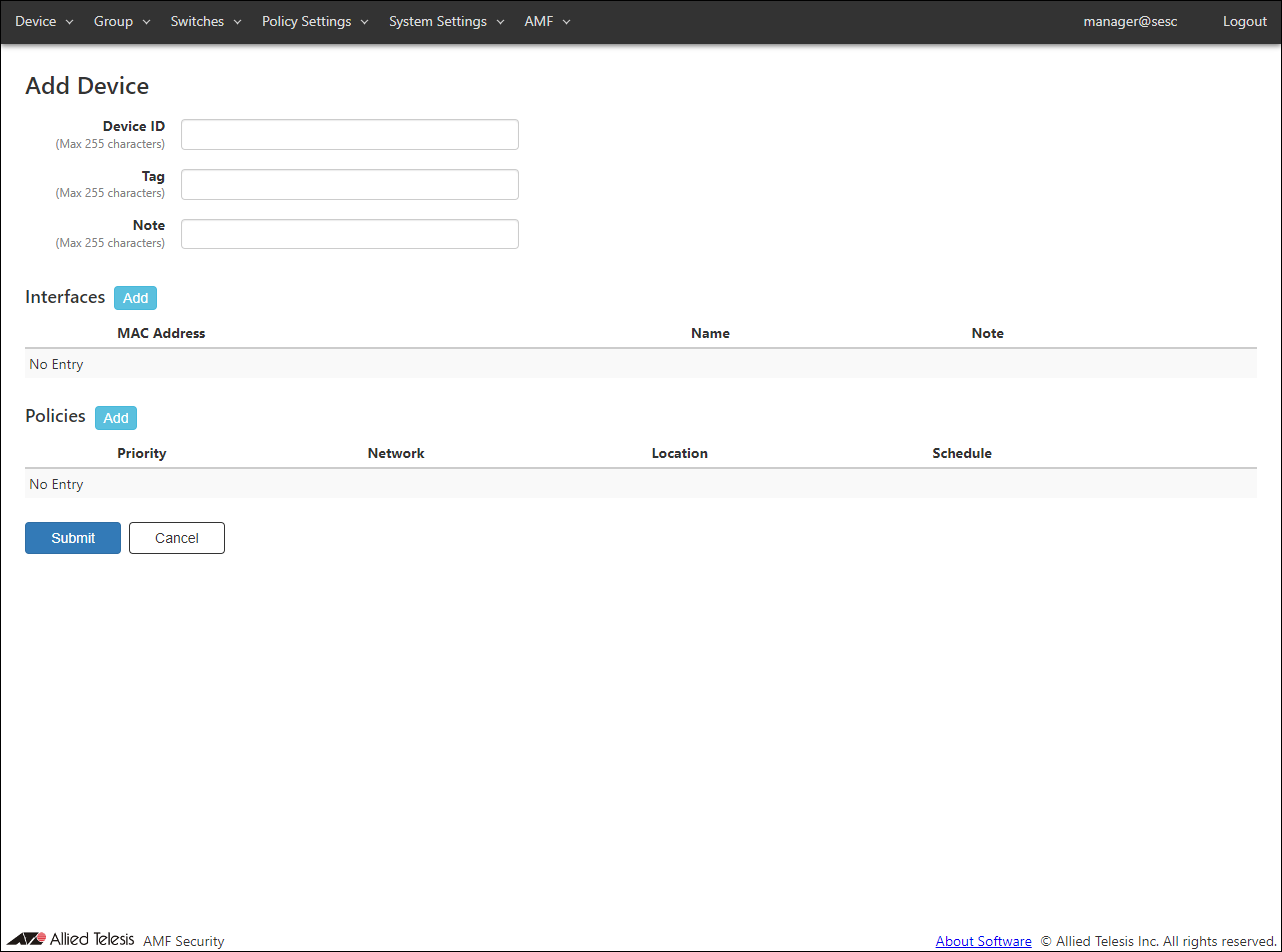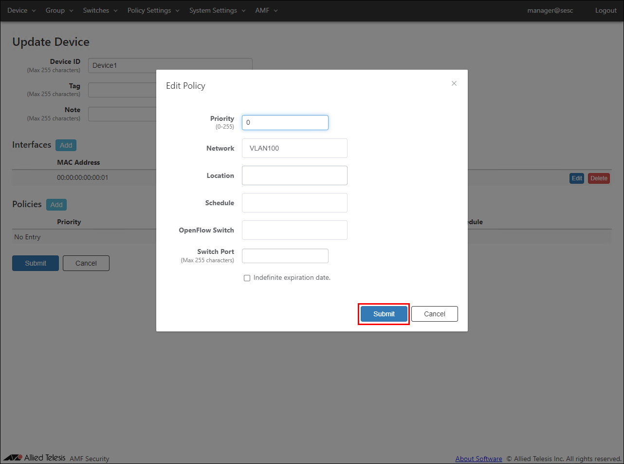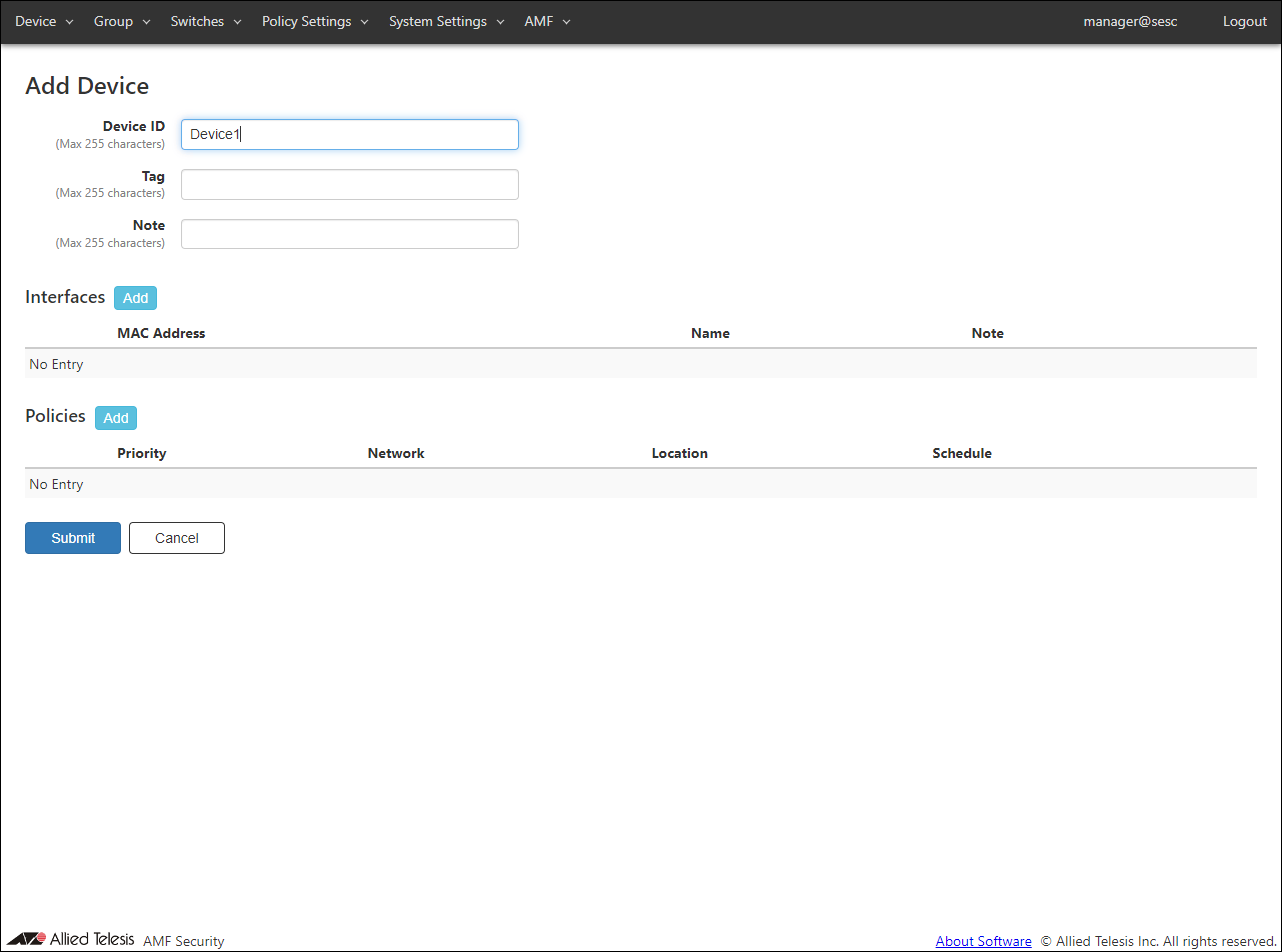 - After entering the device ID and adding the interface and policy, click the "Submit" button.