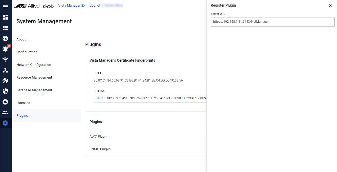 - If the Plug-in is registered normally, "SNMP Plug-in" is added to the Plug-ins list.