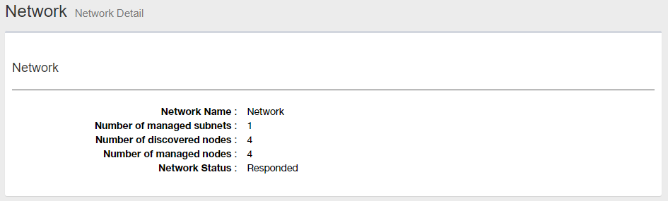 You can open the Network Details page by clicking "Network" in the node attributes section on the Device Tree View page."Network Details" page shows node attributes.