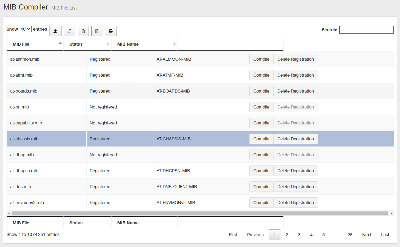 NoteYou can upload, compile, unregister, and delete MIB files only with an administrator account.