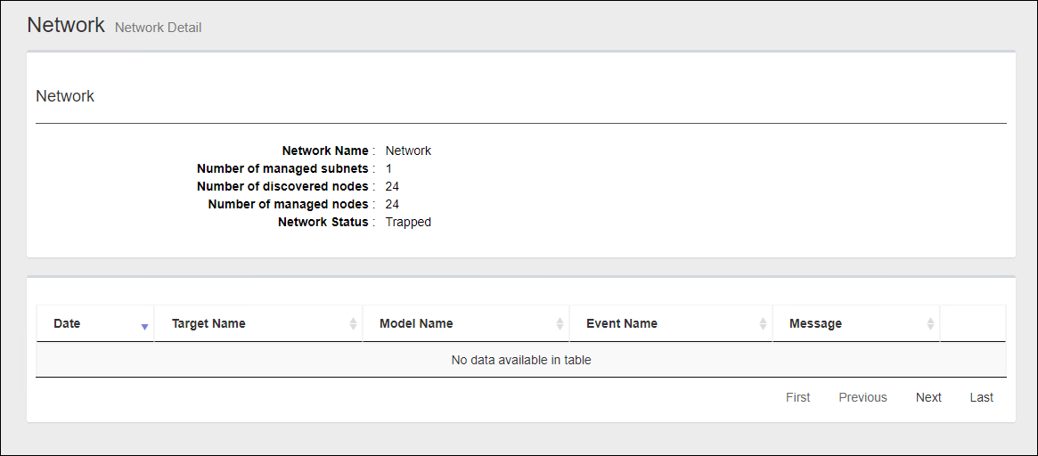 You can open the Network Details page by clicking "Network" in the node attributes section on the Device Tree View page."Network Details" page shows node attributes.