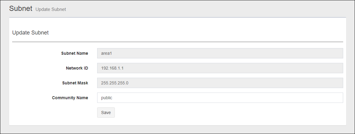 Shows the subnet name.NoteYou cannot change the Subnet Name. To change the name, you have to delete and add it with a new name. |