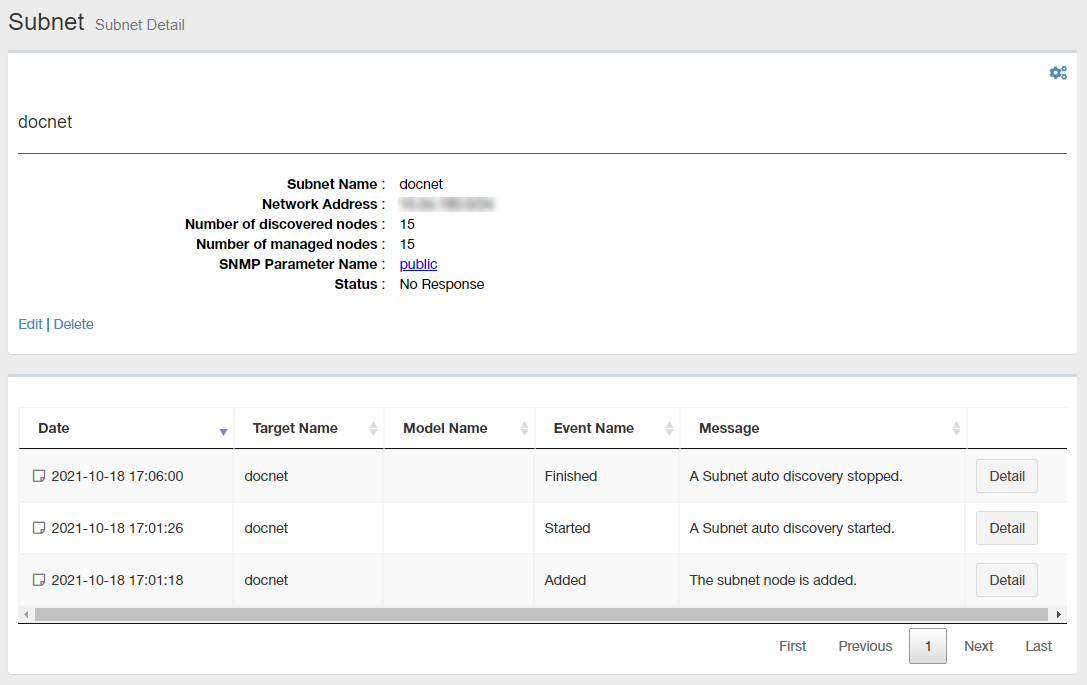 | Edit | Opens the Edit Subnet page for the subnet. |
