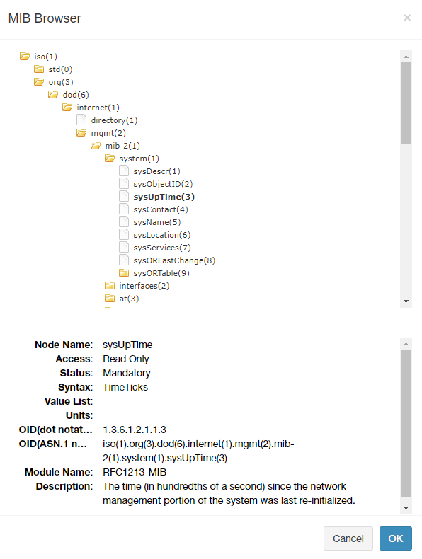 | OID(dot notation) | Displays the object ID of the MIB node. |