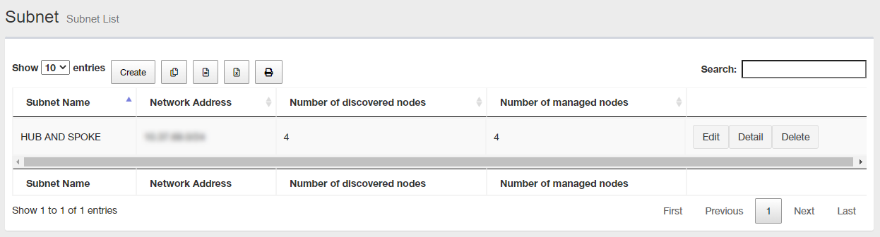 | "Create" button | Adds a new subnet with the data you input on the page and moves to the Device Tree View page.NoteThe following points should be noted when creating a subnet (Auto Discovery). |