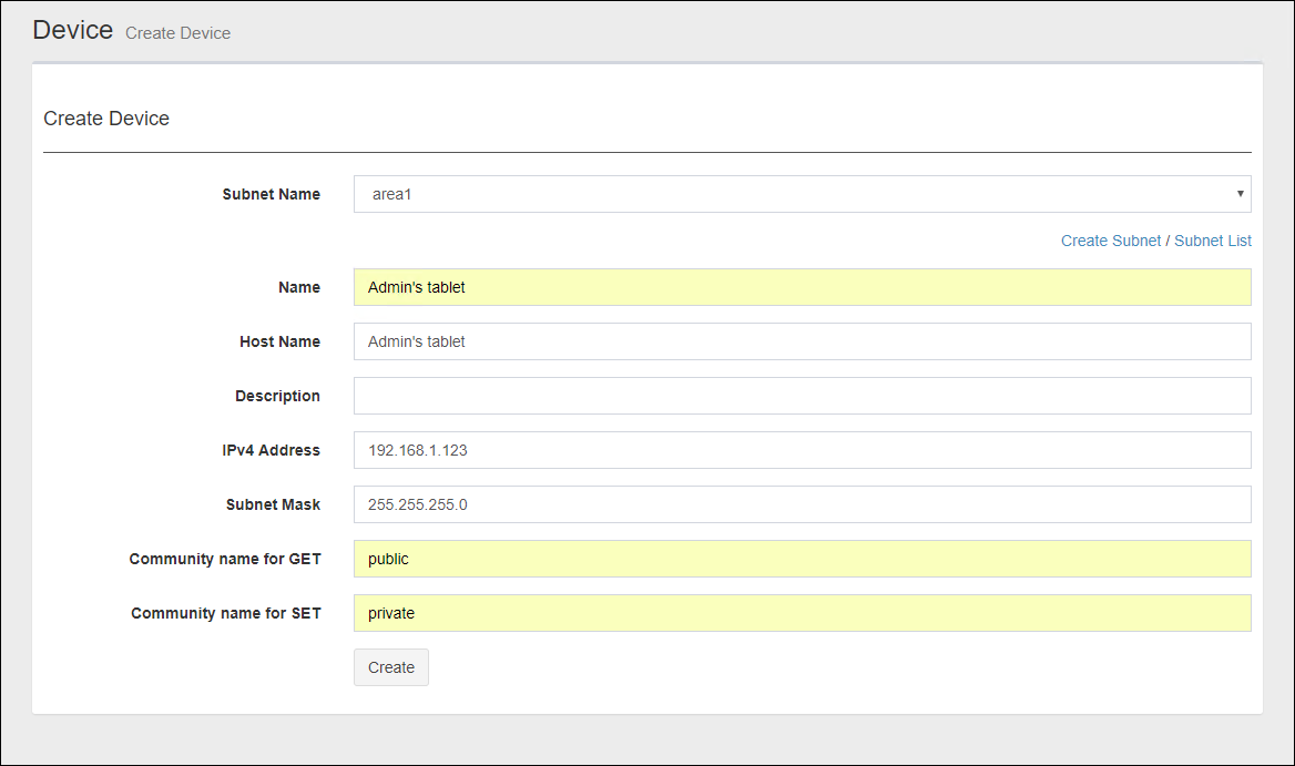 NoteWhen manually adding a device, the MAC address, IPv4 address, and vendor name may not be displayed on the Device list page depending on the model. In that case, perform the auto-discovery. Depending on the result of the Auto Discovery, the information is displayed.
