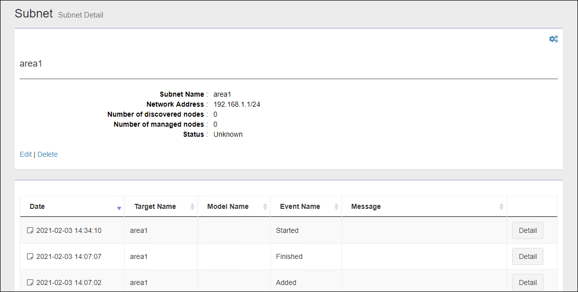To edit a node information, click the "Edit" button on each node's details page. A page for editing a node such as the Edit Subnet page, the Edit Device page is displayed depending on the selected node type.The next is an example of the Edit Subnet page.
