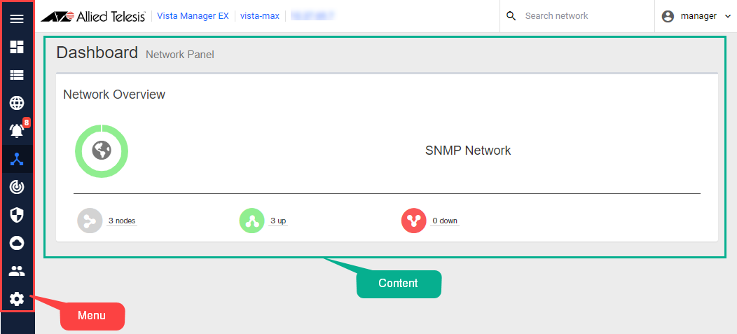 SNMP Plug-in is integrated with Vista Manager EX and its functions can be accessed through Vista Manager EX's management web interface.