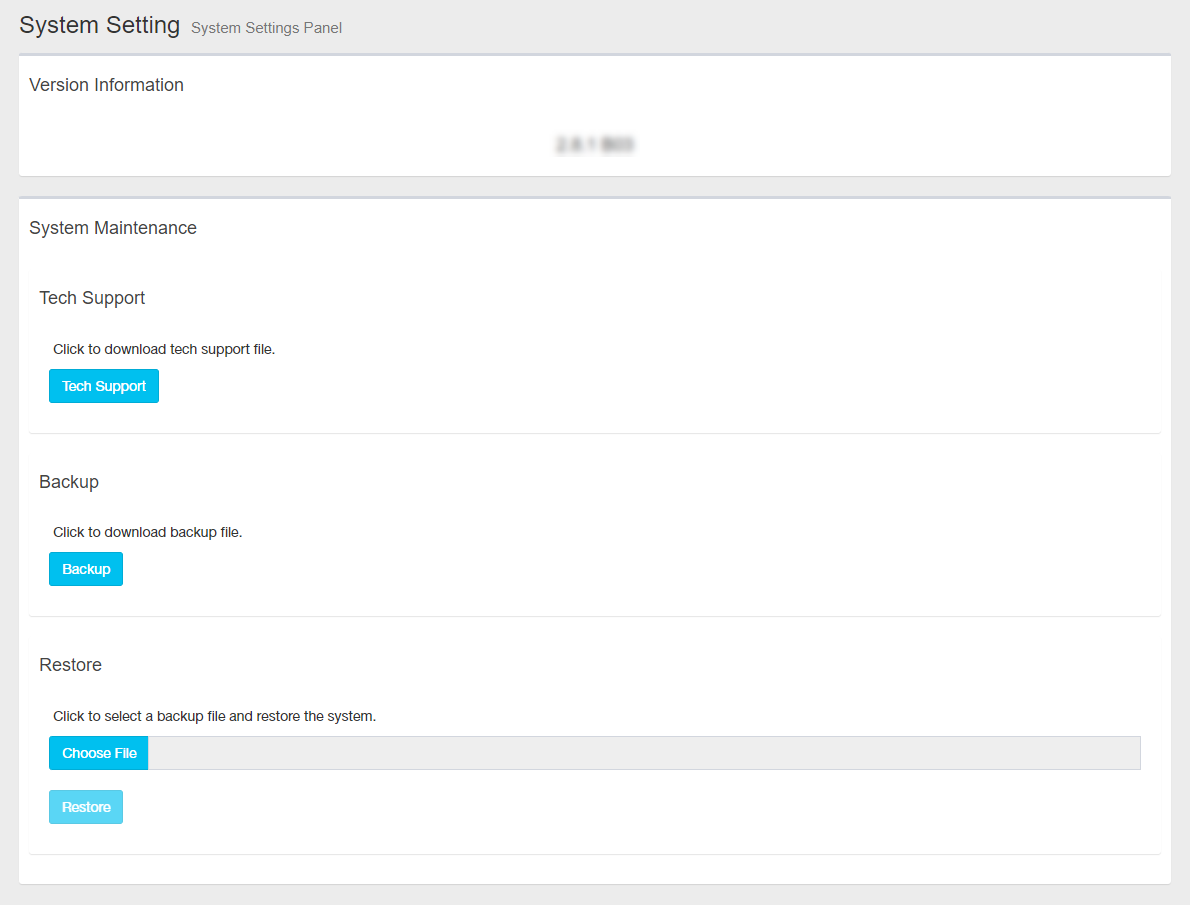 | "Restore" button | Restore the settings from a backup file saved as an external file. |