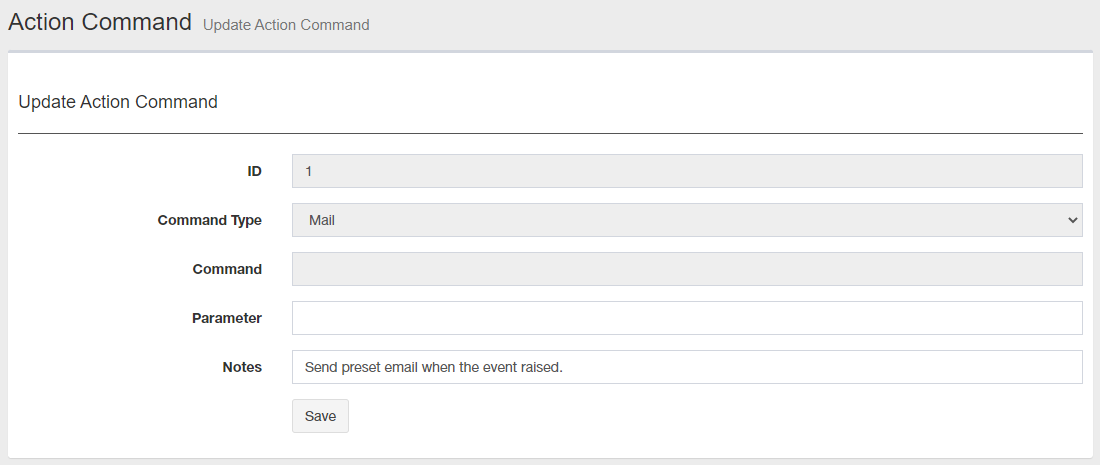 | "Save" button | Saves the changes to the action command configuration. |