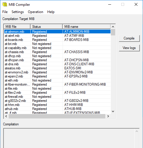 You can compile MIB files selected on the list so that the MIB browser can use them.