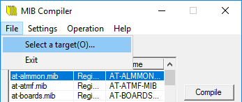 To compie MIB files, take the following procedures.- Select "File" > "Select Target".