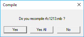 - The selected files will be compiled. If some of the selected MIB files are already compiled, the following dialog box asks you whether to recompile them. Answer either "Yes", "Yes to all" or "No".