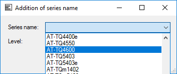 Opens "Add Series Name" dialog box. On "Add Series Name" dialog box, you can add a new series name and its device level for an Allied Telesis product which is not listed by default. |