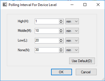 Interval for the level "None" specifies the monitoring interval for any devices which are not registered in "Device Level Configuration Utility".