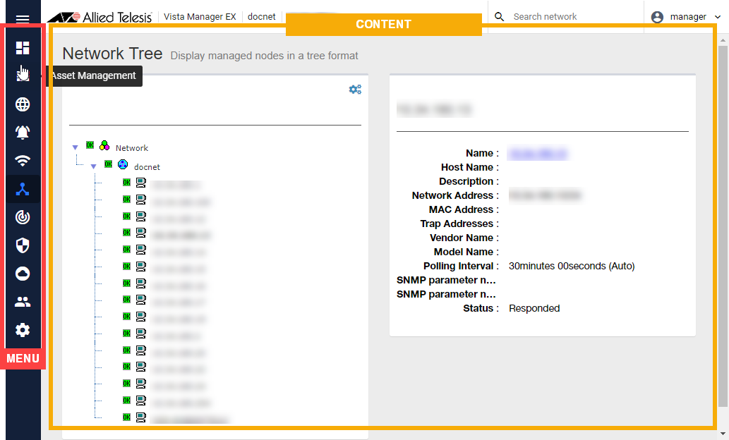 A page for SNMP Plug-in consists of two major sections, "Menu" and "Content".