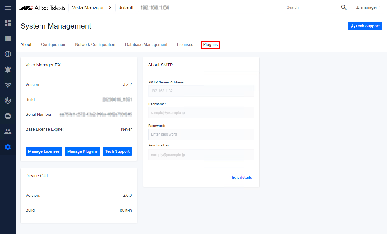 - On the System Management page, click the "Plug-ins" tab.
