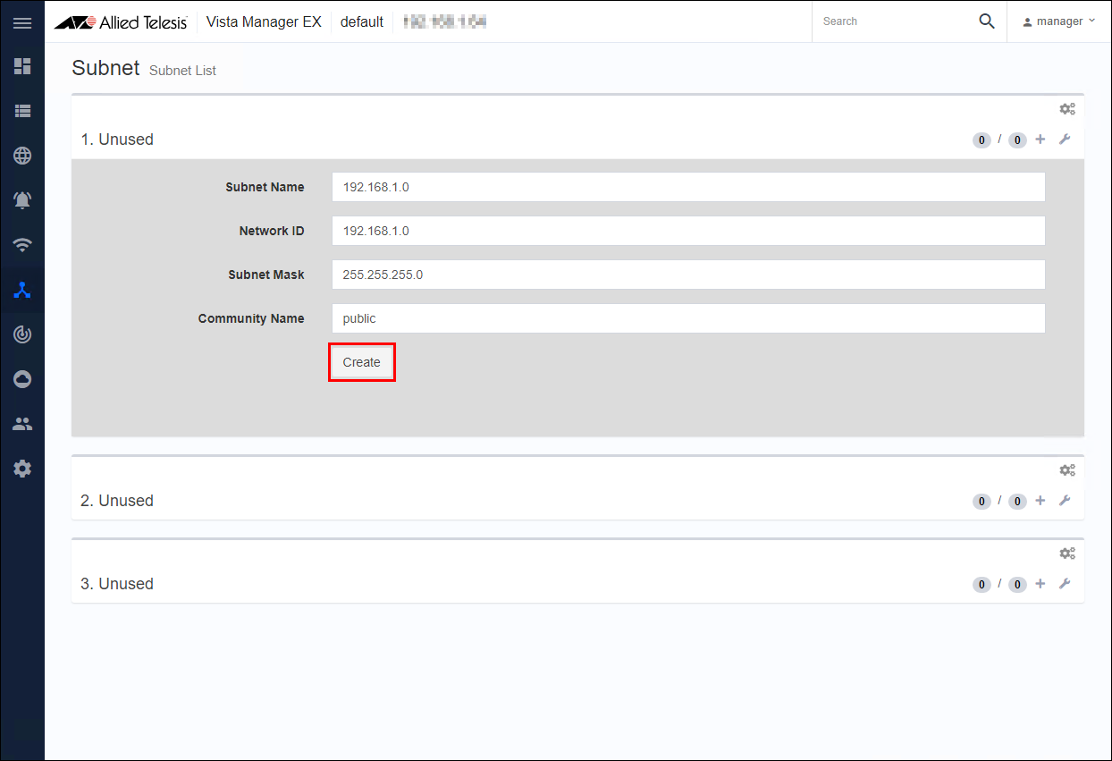 This completes the SNMP subnet registration and can be managed by Vista Manager.